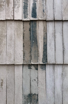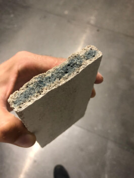 Zement ist für 7–9 % der weltweiten CO₂-Emissionen verantwortlich (Sobek, Non Nobis, 2022). Gemeinsam mit dem Baustofflabor der FH Potsdam wurde in diesem Forschungsprojekt die Anwendung von alkalisch aktivierten Bindemitteln als Alternative zu Zement untersucht. Basis ist der Reststoff Hüttensandmehl, fein gemahlene Hochofenschlacke, die als Bindemittel genutzt wird. Ziel des Projekts war es, Haltbarkeit, Herstellbarkeit und gestalterische Qualität eines solchen Materials zu testen. Entwickelt wurde ein schindelartiges Produkt für Fassaden- und Dachbedeckungen.
