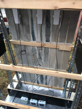 Ein Versuchsstand auf dem Hochschulgelände der FH Potsdam erfasst seit 2024 über Sensoren Temperatur-, Feuchte- und Verformungswerte der Prototypen. Zusätzlich werden quartalsweise Materialproben auf ihre Festigkeit geprüft. Die Forschung basiert auf der Doktorarbeit von Janis Moye und wird durch die IBB Berlin gefördert.