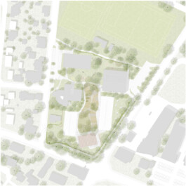 In Wissingen entsteht ein neuer Schulcampus, der sich harmonisch in die umgebende Landschaft einfügt. Zwei Schulgebäude werden parallel zum Niemandsweg positioniert und formen einen großzügigen Schulhof mit einem zentralen Schulgarten als Herzstück. Hier erleben die Kinder täglich das Wachstum selbstgepflanzter Gemüse und Obstbäume.